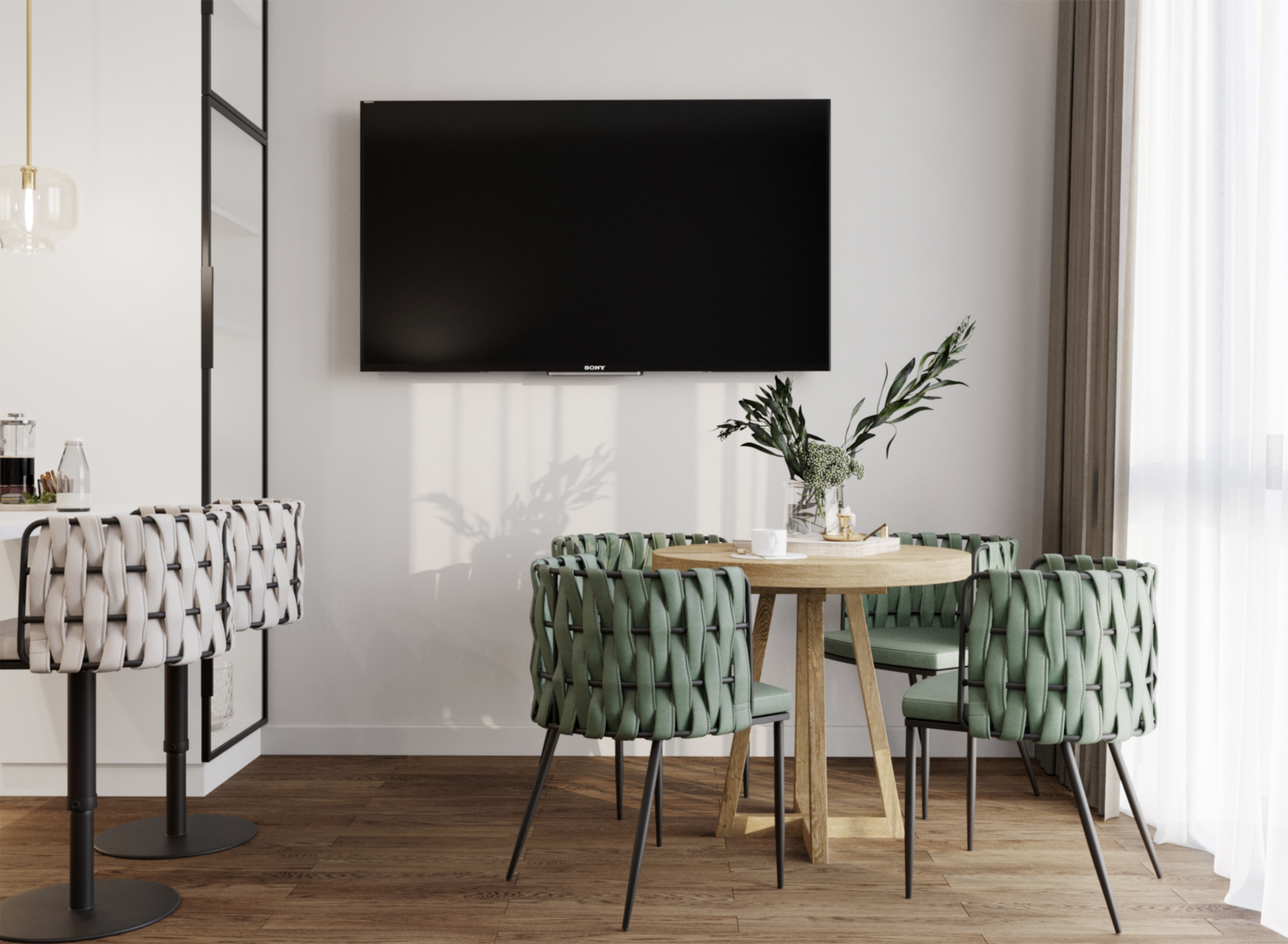 Мы получили квартиру в каркасе из 4 стен между квартирами с панорамным остеклением, а сделали неимоверно душевную и эргономичную планировку, соблюдая все ГОСТ и нормативные особенности для помещений.