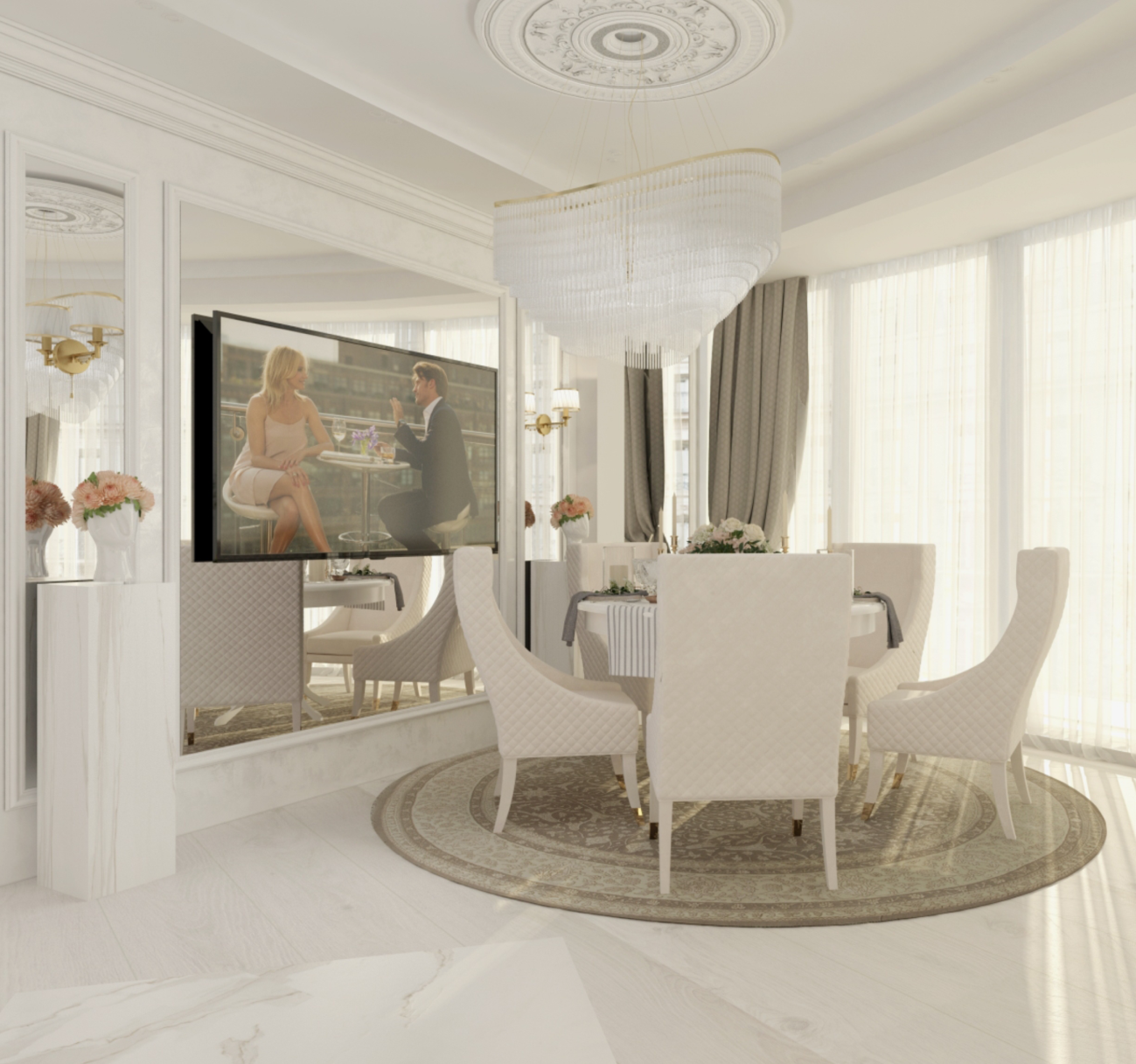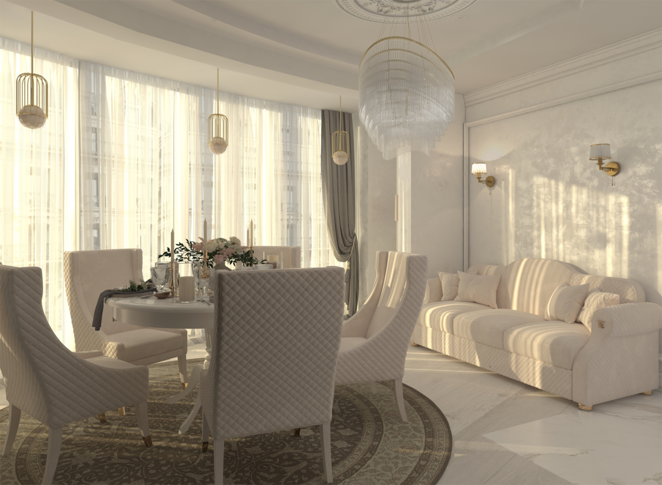 А ведь это действительно очень важно при проектировании пространства в 121,80 м2. Современная классика, выбранная нами, в качестве основной стилистики квартиры, сыграла нам на руку, ведь интерьер получился действительно необычным, домашним с видом на море, а самое главное реализован так, как мы его задумали.