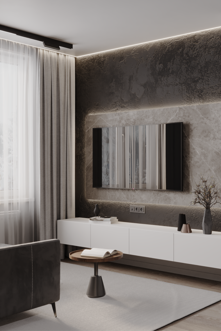 Двухкомнатная квартира для молодого человека 19лет, которую ему подарили родители в ЖК «Летний Сад». Мы хотели создать интерьер, который будет похож на своего хозяина – неординарную, молодую и интересную личность. В сочетании с бесчисленным количеством фактур - деревом, мрамором, гранитом, эмалями, несколькими оттенками металла, велюром и льном, ритмичностью геометрических элементов сделали многослойный интерьер, который хочется рассматривать.