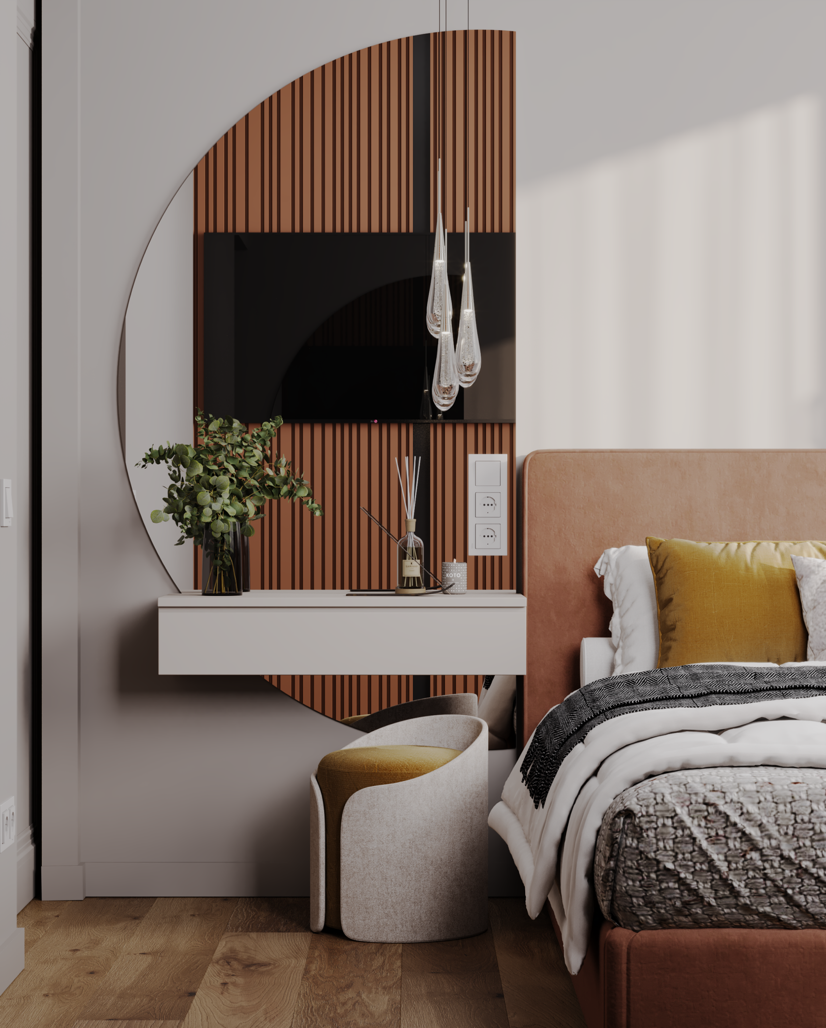 Задач перед нами стояло много: ▪ в 13 квадратах разместить кухню-гостиную с дополнительным спальным местом; ▪ отдельный санузел; ▪ ванная с зонами хранения; ▪ прачечная со шкафами; ▪ просторная детская с игровой зоной И многое другое Планировка настолько удачная, что была согласована с 1 раза и без правок